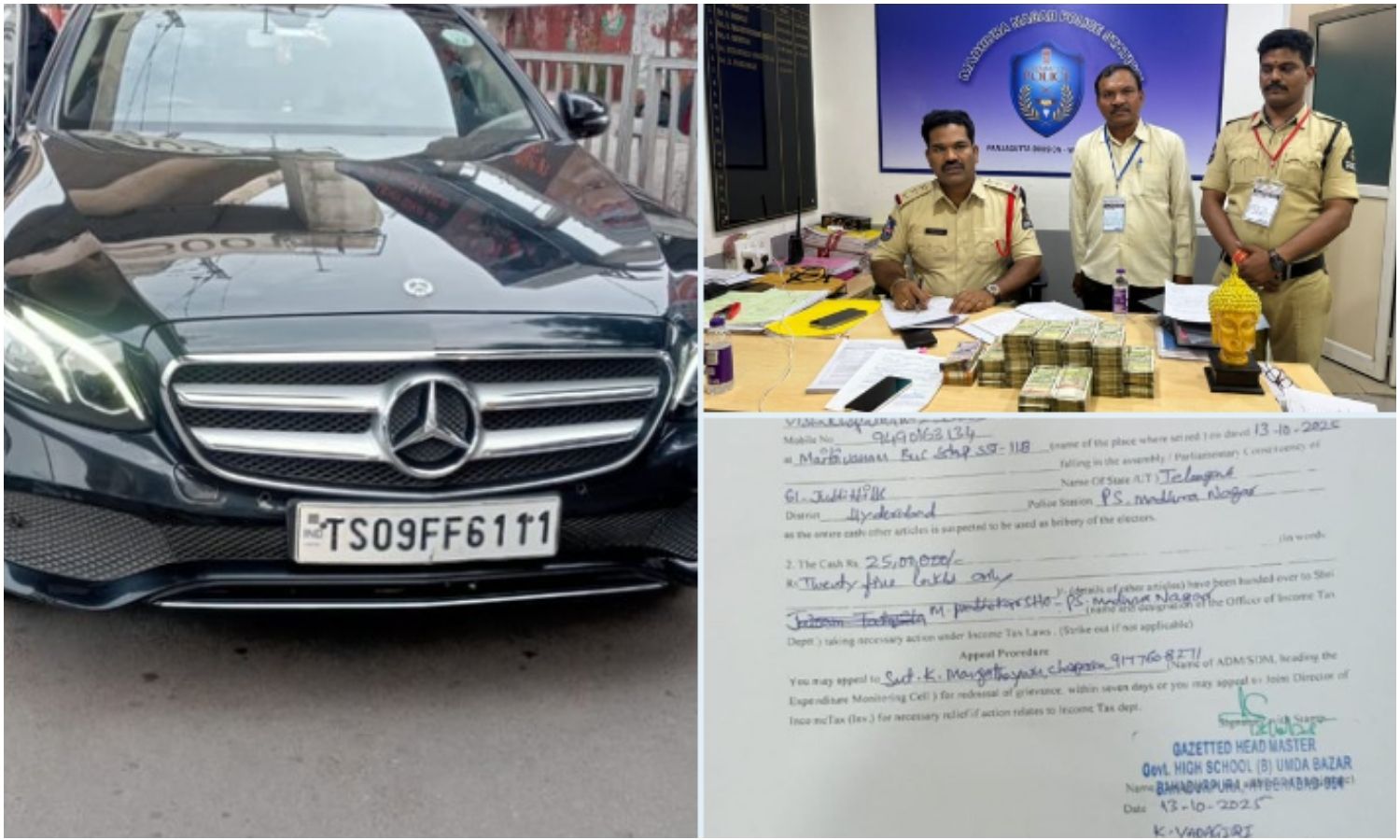 Hyderabad: The Static Surveillance Team (SST) seized ₹25 lakh in cash on Monday during inspections for the Jubilee Hills by-election. Officials said the money was moved in violation of election rules and without valid documents.