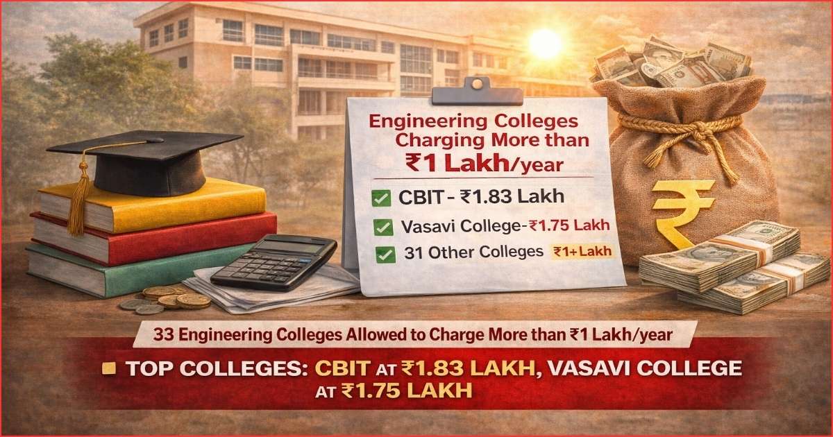Hyderabad: The Telangana government issued orders revising engineering college fees Telangana for 160 colleges, allowing 33 institutions to charge more than ₹1 lakh in tuition for the 2025–28 block period.