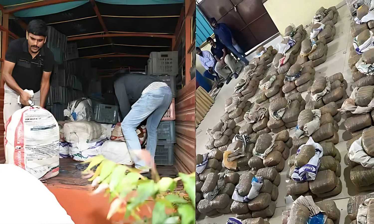 Acting on a tip-off, Khammam Eagle police along with Rachakonda personnel intercepted a DCM truck near Batasingaram fruit market. Inside, they found 455 ganja packets concealed in 35 fruit boxes. The total estimated value of the contraband is ₹5 crore.