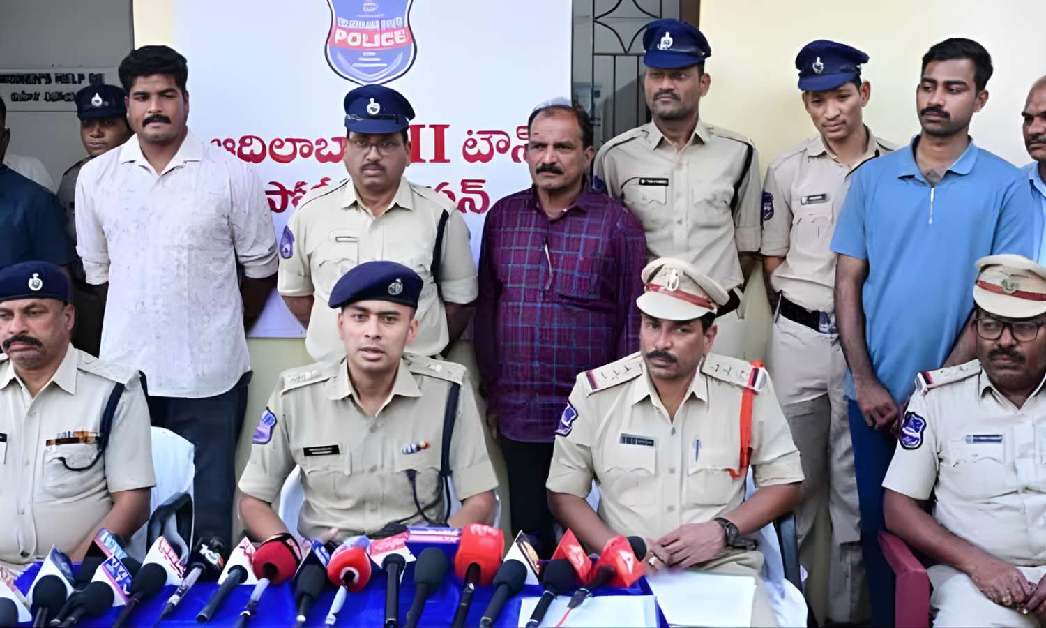 The media briefing was held at the Adilabad Two Town Police Station. DSP L. Jeevan Reddy, Inspector K. Nagaraju, SIs Peer Singh and Vishnu Prakash, and other officers attended the session.