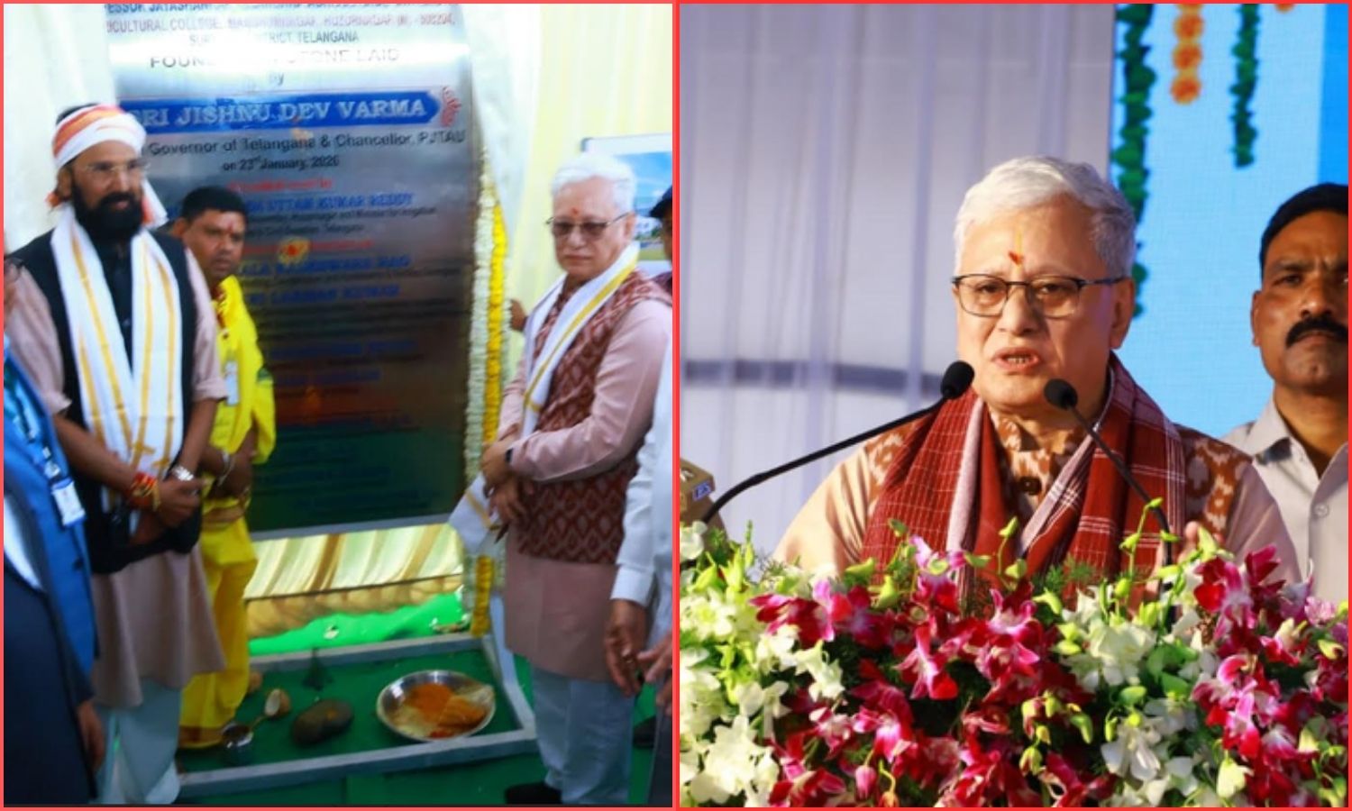 Subsequently, the Governor laid the foundation stone for an agriculture college at Mugudam Nagar near Huzurnagar. The project will cover 100 acres with an outlay of ₹150 crore.