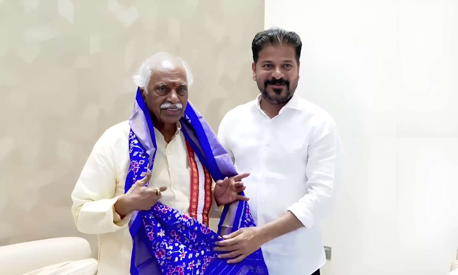 Dattatreya met the Chief Minister at his Jubilee Hills residence and formally presented the invitation for the event, which will take place on October 3 at Nampally Exhibition Grounds. Revanth Reddy welcomed him warmly and honoured him with a shawl.