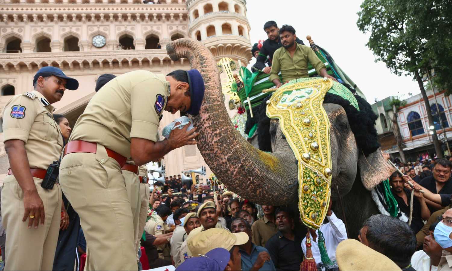 Police had enforced heightened security and traffic measures throughout the 10-day Muharram mourning period. The main Bibi Ka Alam was carried on “Lakshmi,” an elephant brought from Karnataka, as the procession set out from the Ashurkhana in Dabeerpura (Darul Shifa) and proceeded towards Masjid-e-Ilahi in Chaderghat along the banks of the Musi River.