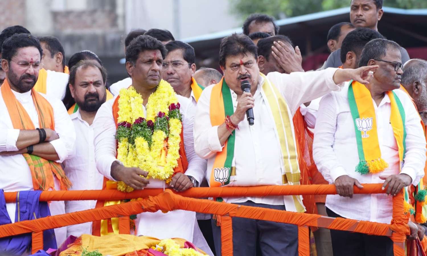 Union Minister G. Kishan Reddy and several other senior BJP leaders joined the rally in support of Deepak Reddy’s candidacy.