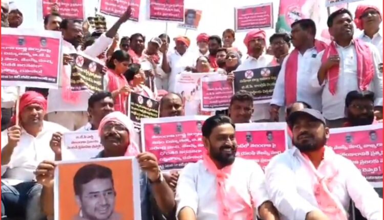 Hyderabad: BRS leaders staged a protest in Adilabad against BJP MP Tejasvi Surya over his comments on Telangana’s formation.