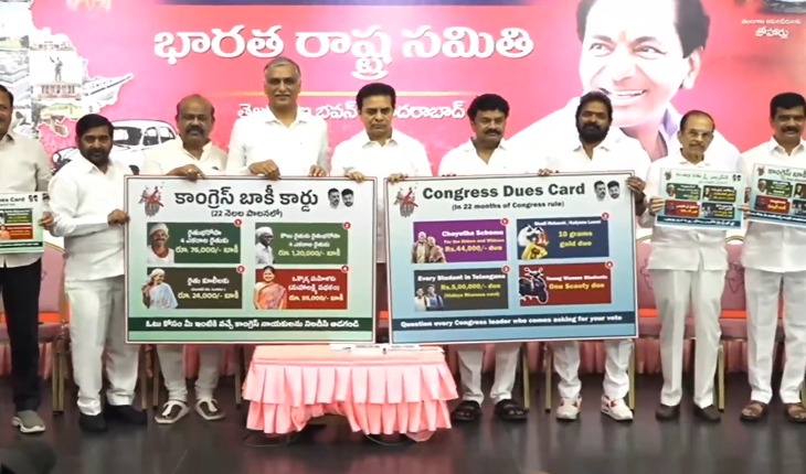 BRS Congress dues card highlights unfulfilled schemes