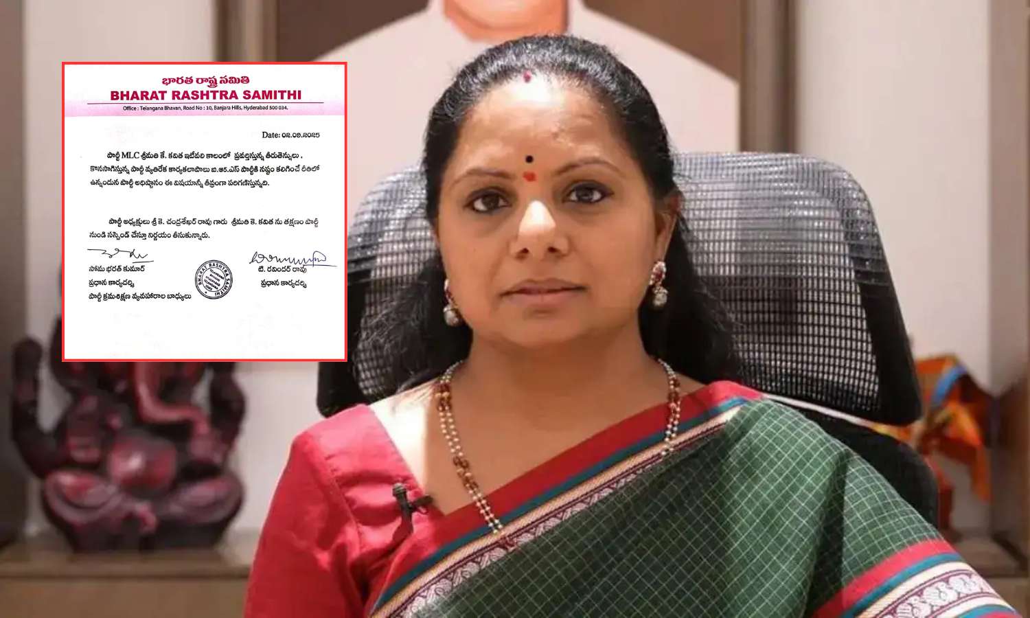 In a statement signed by party general secretaries Soma Bharat Kumar and T. Ravinder Rao, the party said the suspension followed directions from BRS president K. Chandrashekar Rao. They pointed to Kavitha’s open dissent and repeated violations of party norms as the reason for disciplinary action.