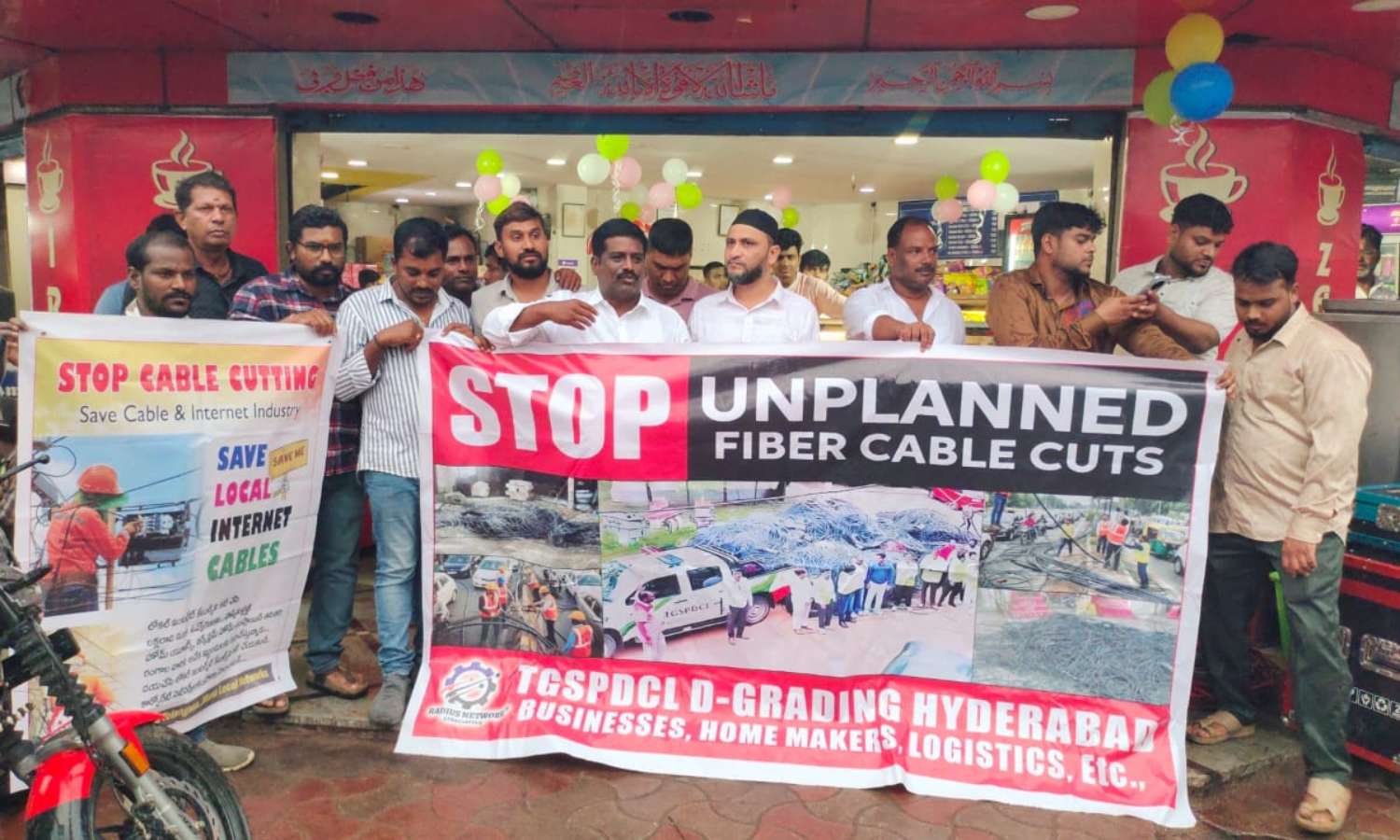 Hyderabad: Cable TV and internet operators in Old City staged a protest on Thursday after electricity department officials reportedly cut overhead wires without prior notice. The incident occurred in Chandrayangutta, leading to disruption of services in both government and private offices, as well as households.