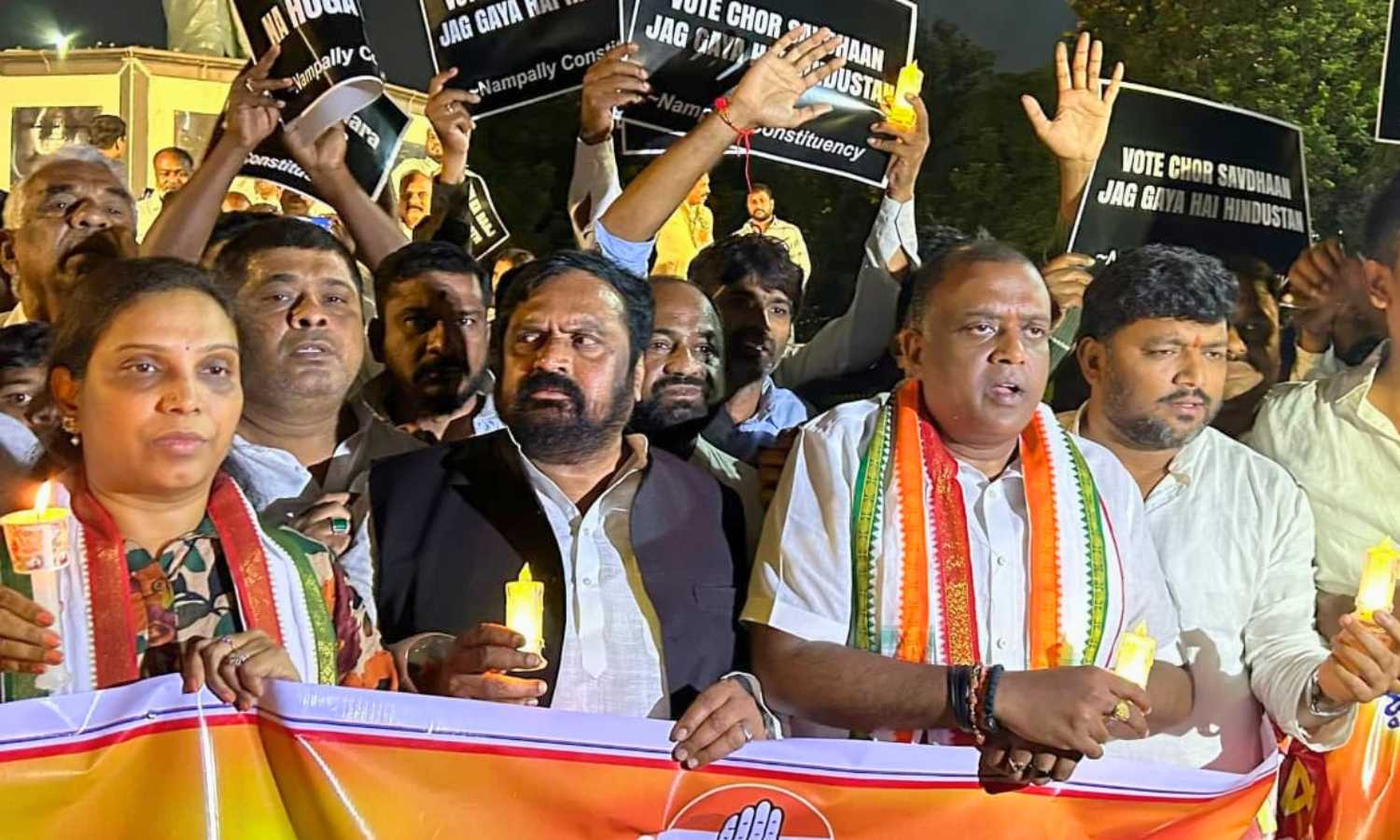 Hyderabad: Congress leaders held candle rallies across all district headquarters in Telangana on Wednesday. They were protesting alleged voter list fraud and accusing the Election Commission of collaborating with the BJP. The demonstrations followed a nationwide call by the All India Congress Committee (AICC).