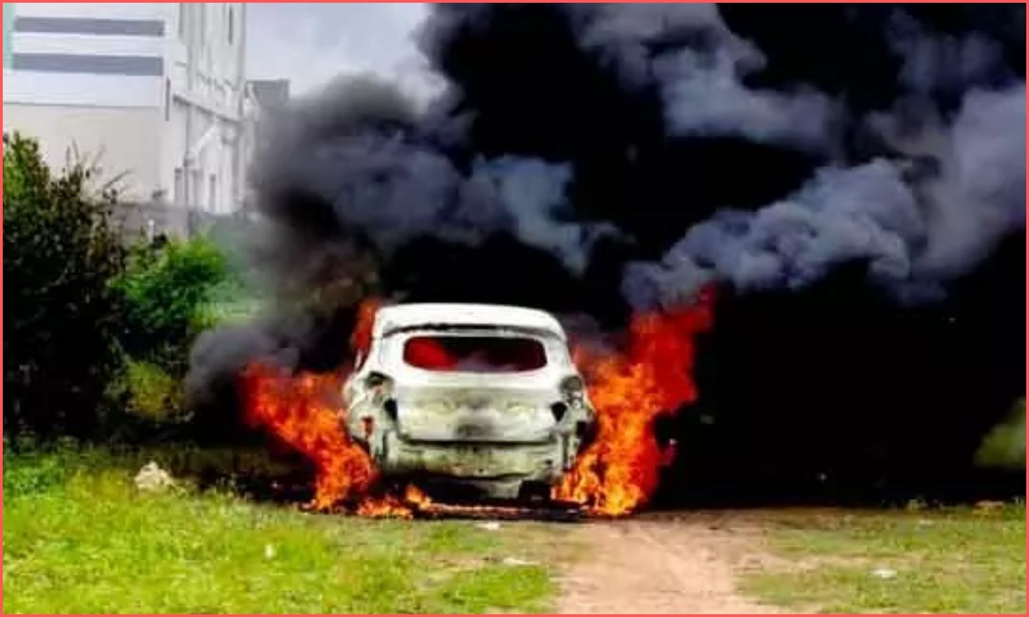 Residents panicked as the fire broke out just a few feet from nearby houses. Some locals tried to douse the flames, but their efforts failed. The car burned completely before the fire department reached the spot.