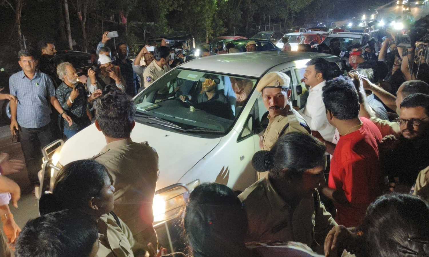 The police had gone to Telangana Bhavan to arrest BRS leader G. Srinivas Yadav, who is accused of attacking a news channel crew. During the operation, other BRS leaders allegedly tried to prevent officers from taking him into custody.