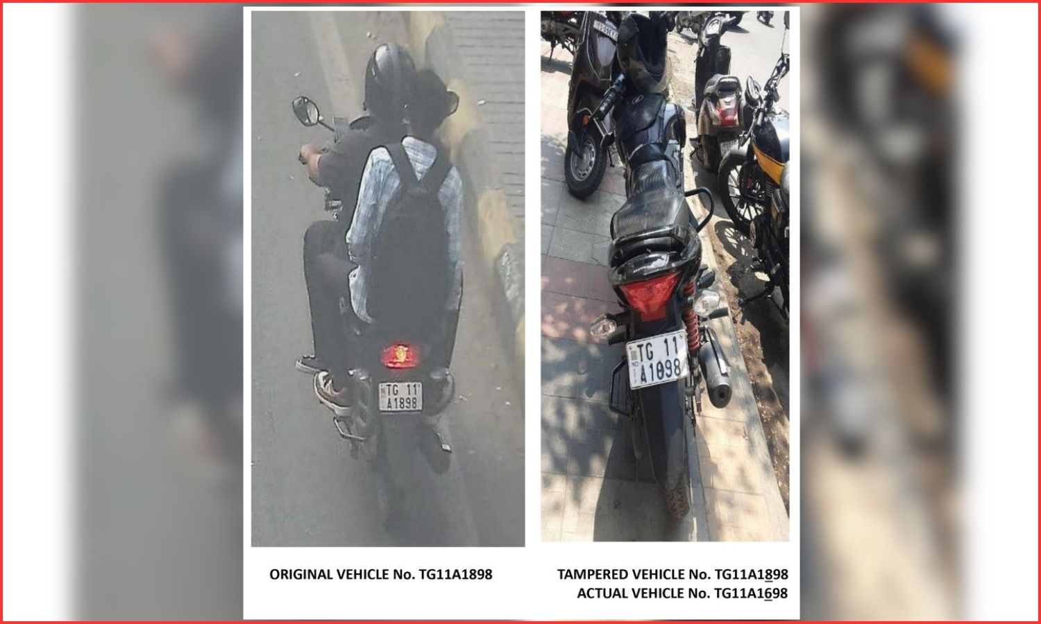 According to police, the accused tampered with his two-wheeler’s original number TG11A1698 and altered it to TG11A1898. As a result, authorities issued traffic challans against another vehicle owner.