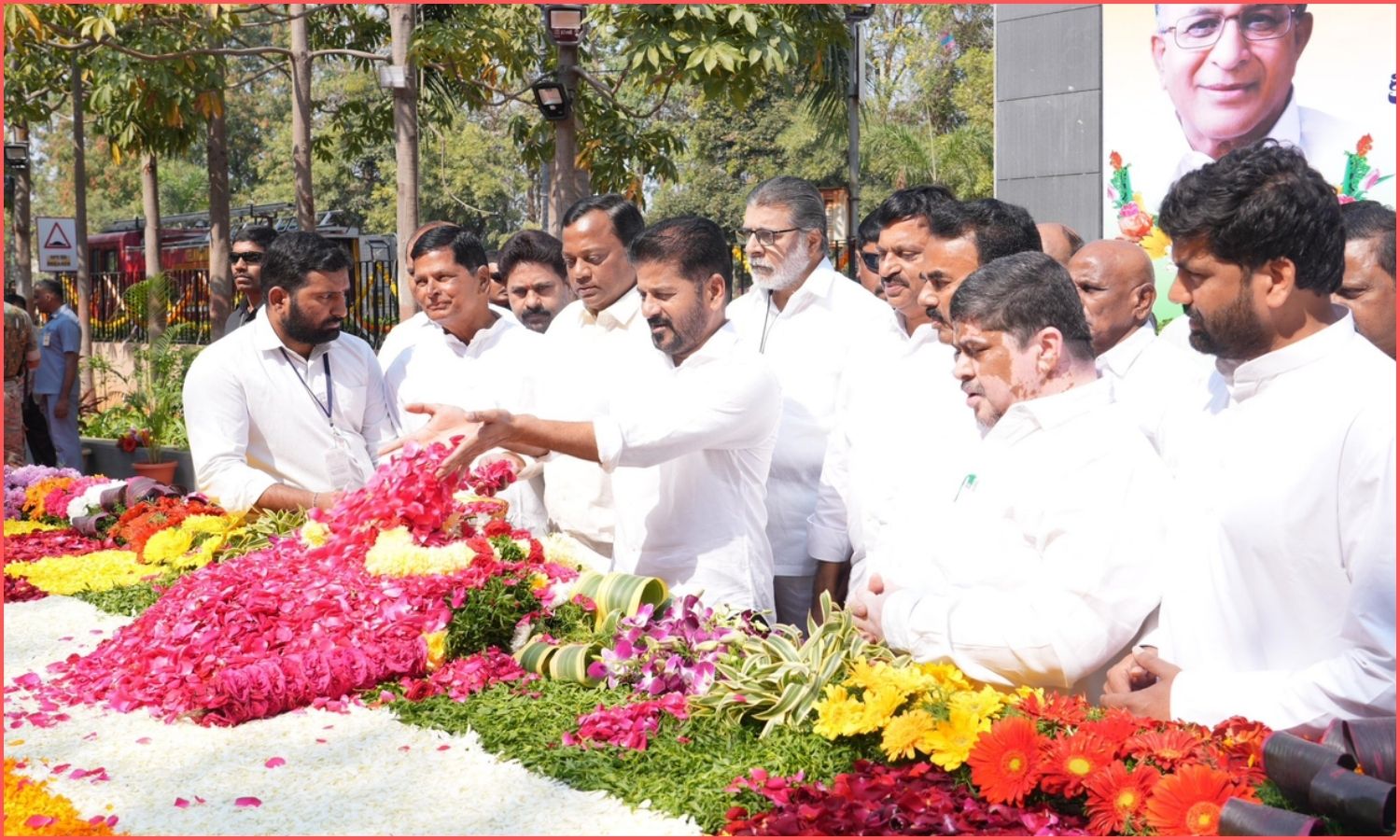 Hyderabad: Chief Minister A. Revanth Reddy paid floral tributes to former Union Minister S. Jaipal Reddy on the occasion of his 84th birth anniversary.
