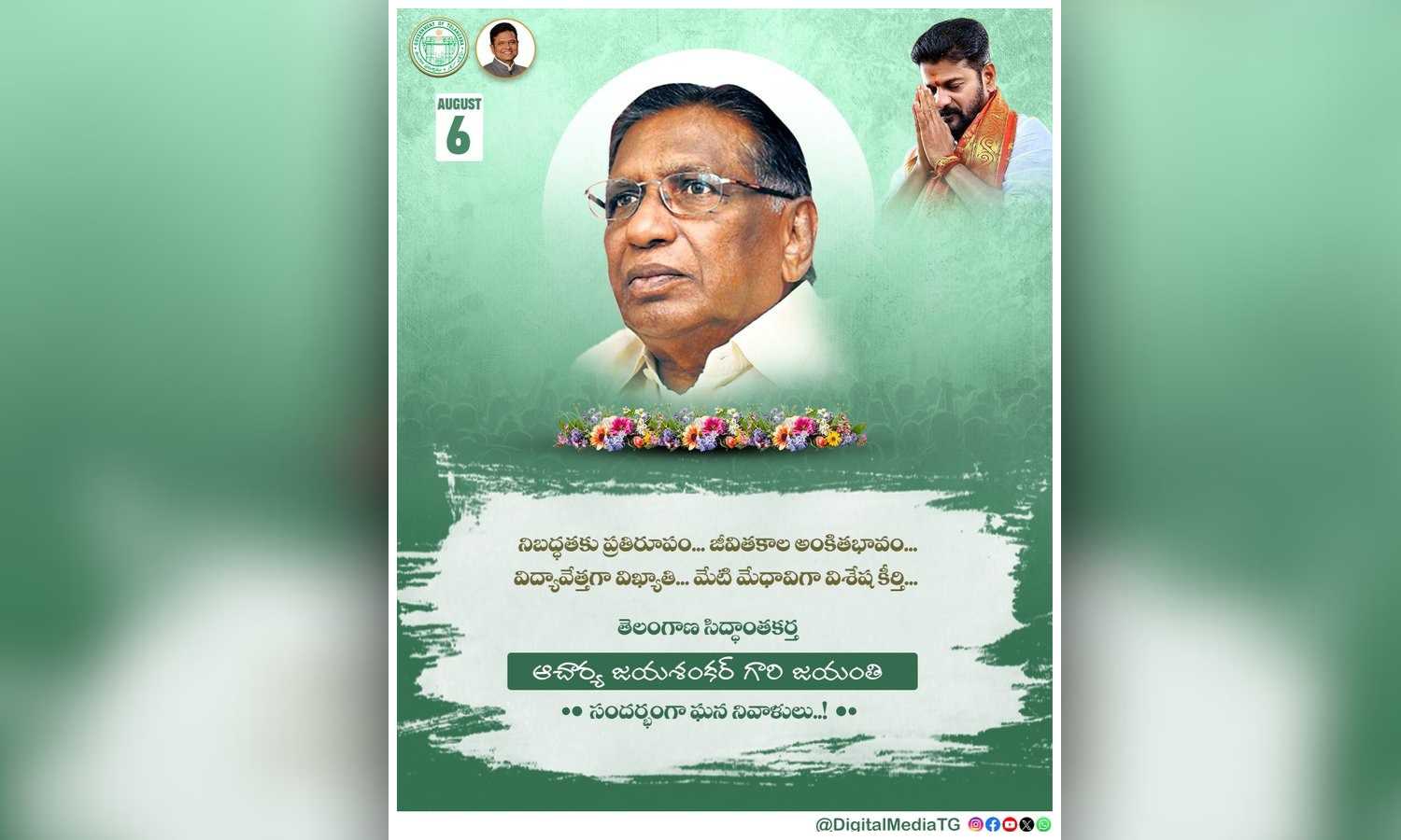 Calling him the intellectual architect of Telangana, the chief minister described Jayashankar as a symbol of commitment and lifelong dedication. He said the late professor’s reputation as a scholar and visionary earned him lasting respect.
