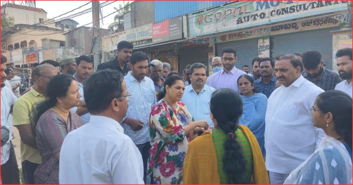 They inspected road widening works at Sridevi Theatre lane on Ameenpur Road. These works aim to improve traffic flow and reduce congestion in the area.