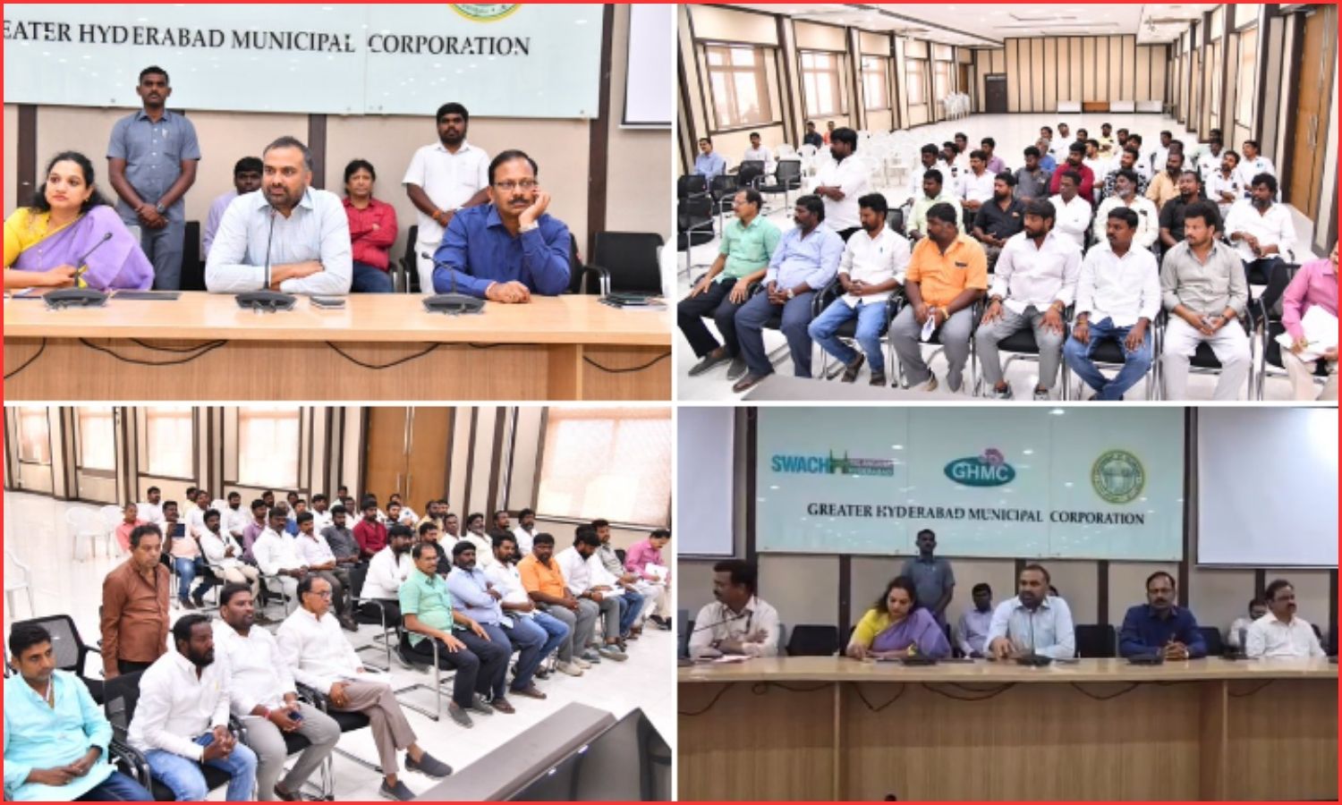 GHMC Commissioner RV Karnan, Cyberabad Commissioner G Srijana and Malkajgiri Commissioner T Vinay Krishna Reddy held a special meeting with Swachh Auto drivers and sanitation workers at the GHMC Head Office. They reviewed field-level performance and stressed daily coverage of every household.