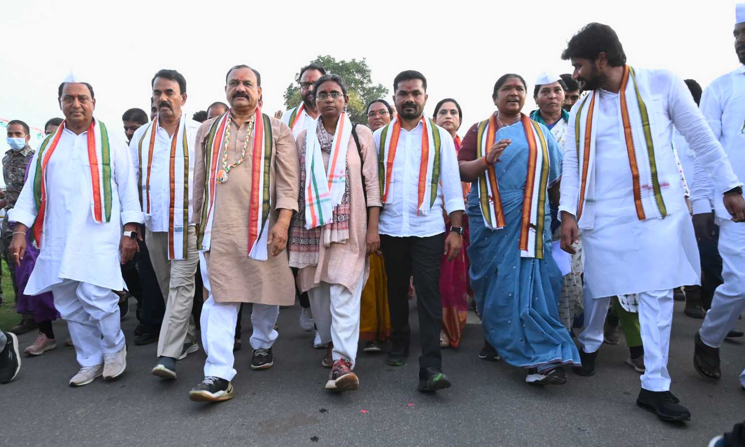 TPCC chief Goud was joined by AICC Telangana in-charge Meenakshi Natarajan, along with district ministers, MPs, MLAs, MLCs, DCC presidents, and other senior TPCC functionaries. Leaders used the march to explain state government welfare schemes and mobilise rural volunteers through community service activities.