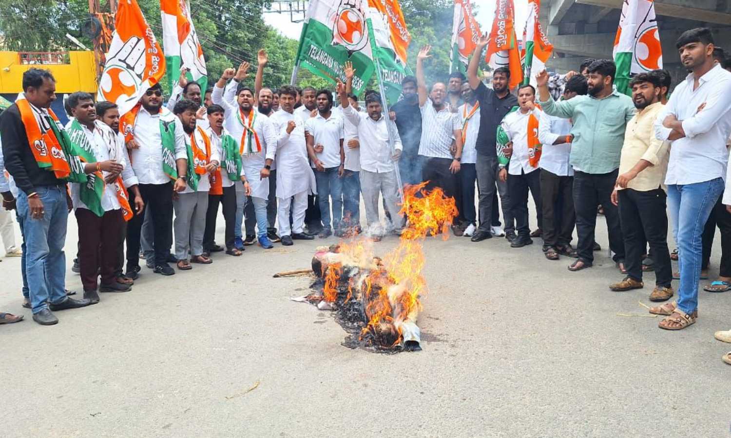 Protesters warned that Kaushik Reddy would face stiff resistance and public backlash if he failed to issue an immediate and unconditional apology. The Youth Congress accused the MLA of making baseless and provocative remarks against a Chief Minister whose governance, they claimed, is being welcomed by the public.