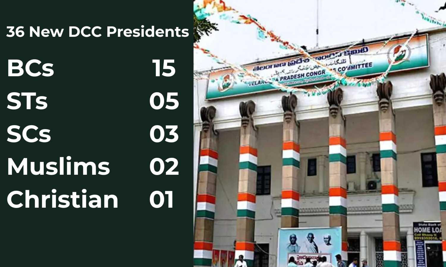 Hyderabad: The Congress party has appointed 36 new District Congress Committee (DCC) chiefs across Telangana, focusing on social representation. It gave priority to leaders from Backward Classes (BCs), Scheduled Tribes (STs), Scheduled Castes (SCs), and minorities. The new list includes 15 BCs, five STs, three SCs, and three minority leaders—two Muslims and one Christian.