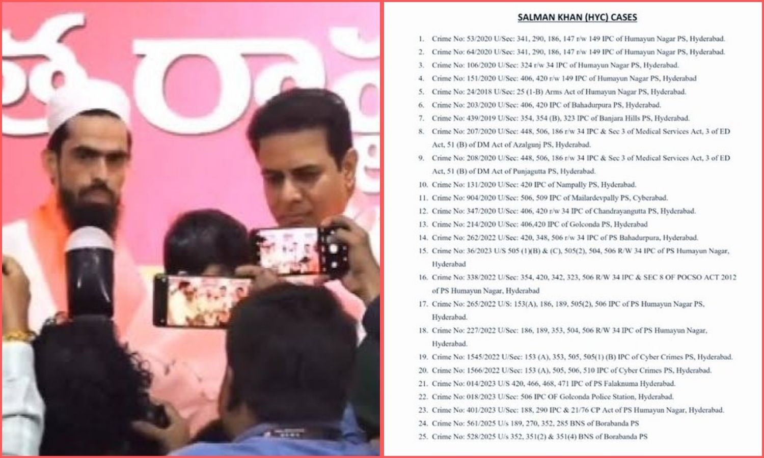The Congress posted a list of criminal cases against Salman Khan on its official X handle. The post accused KTR of supporting a POCSO case accused and demanded an explanation.