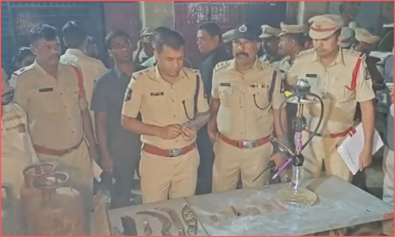 The cordon and search led to the seizure of three dangerous knives and one hukka set. Furthermore, officers recovered five packets of illegal cannabis (ganja) and three small gas cylinders stored unlawfully.