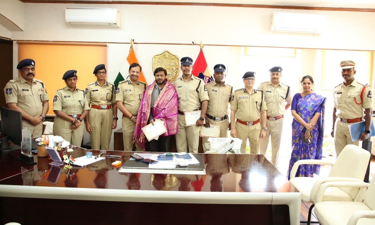He felicitated Mohammed Firoz at the old Police Commissioner’s office in Basheerbagh. Sajjanar presented him with a shawl, a commendation certificate, and a cash reward.