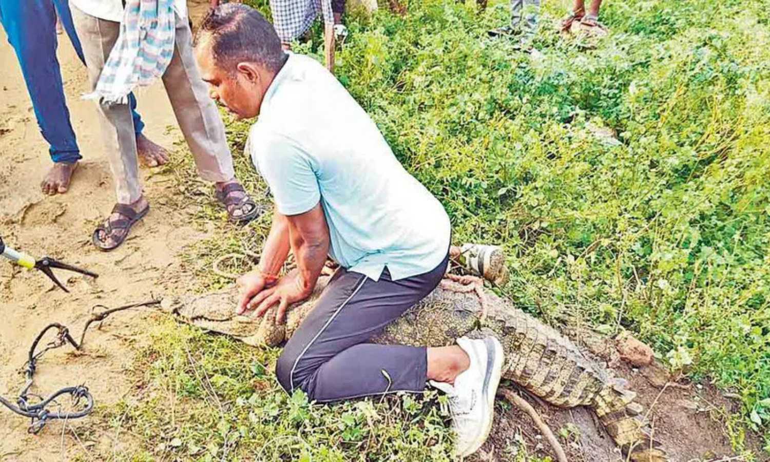 Krishnasagar reached the location and successfully removed the crocodile from the net without harm. The rescue effort ensured that neither the animal nor any person was injured.