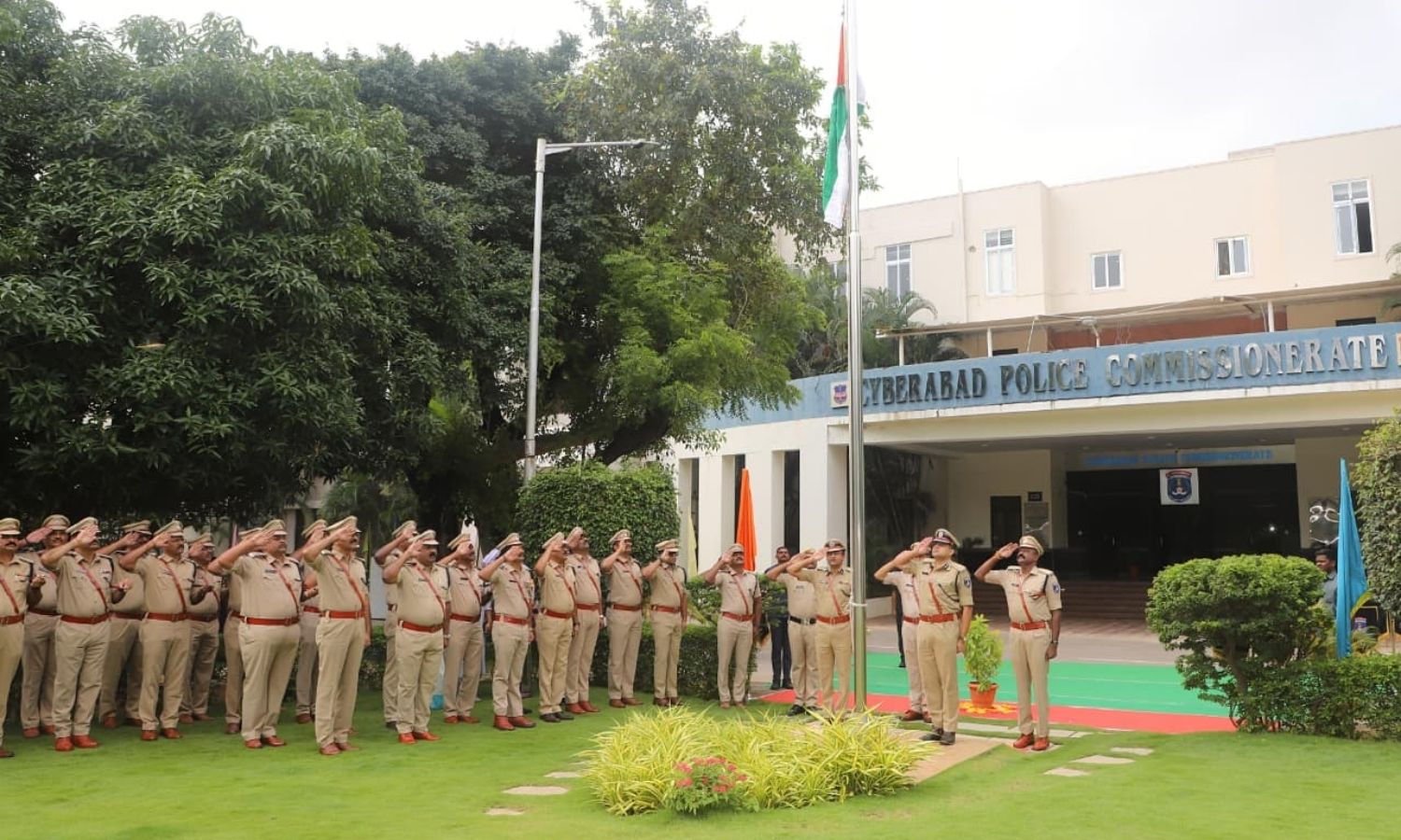 Hyderabad: The Cyberabad Police Commissionerate observed Praja Palana Day on Wednesday with a flag hoisting at its headquarters. Commissioner of Police Avinash Mohanty unfurled the National Flag.