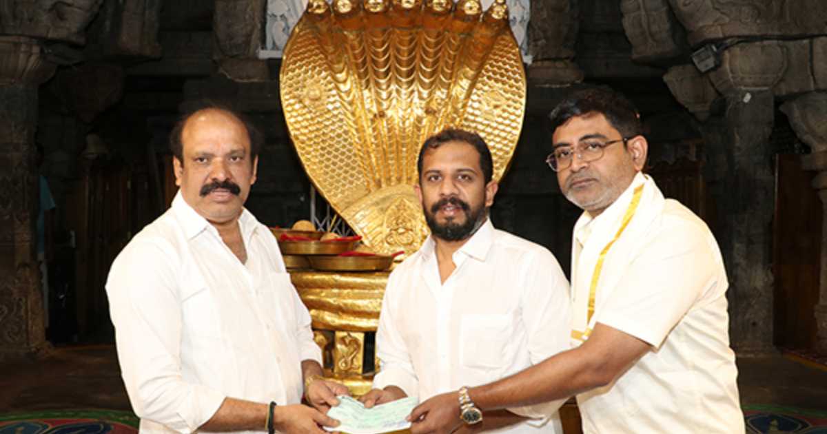Company directors Indraneel Chitturi and Mahendra Yarlagadda handed over the demand draft for ₹1,01,25,000. The donation was presented to temple official Ramakrishna at the Ranganayakula Mandapam in Tirumala.