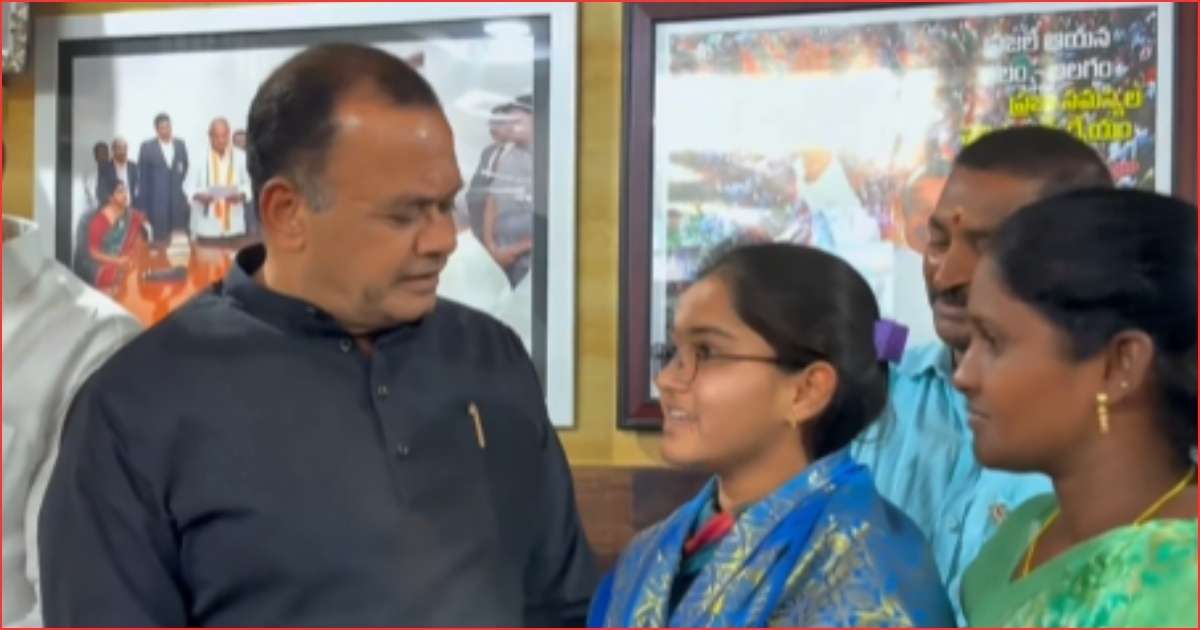 As part of encouragement, the Minister provided ₹50,000 as financial assistance to support her higher education.