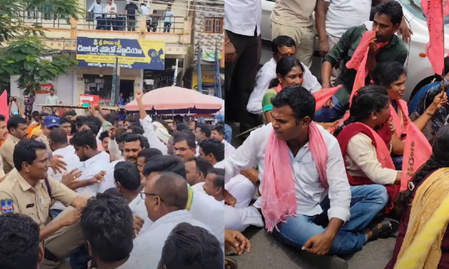 Hyderabad: Political tensions escalated in Peddapalli district’s Dharmaram town on Tuesday as Congress and Bharat Rashtra Samithi (BRS) leaders squared off in public over claims of development work, leading to a police-controlled standoff at the main junction.