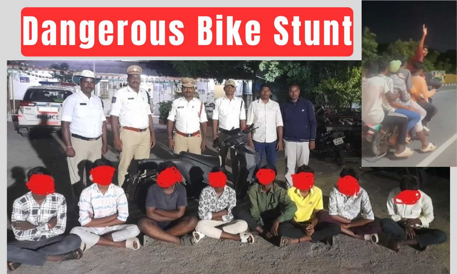 Police said cases were registered and all eight were detained. Officers noted that despite arrests, counselling, and penalties, such stunts continue unabated across city roads.