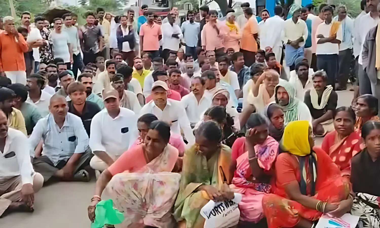 They began gathering outside the Shivvampet Agricultural Cooperative Society from the early morning hours. Many waited in queues, hoping to receive urea for their crops. When officials told them the stock hadn’t arrived, the farmers launched a dharna and moved onto the road.