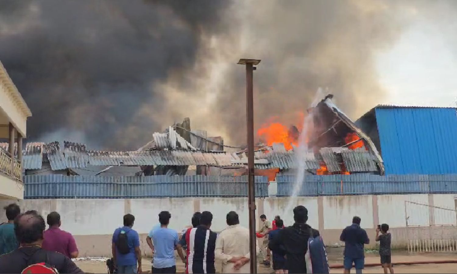 The blaze broke out near Vangayagudem, right across from a cancer hospital, where flames quickly consumed the Sushmita Furniture and Cushioning unit, triggering panic in the area.