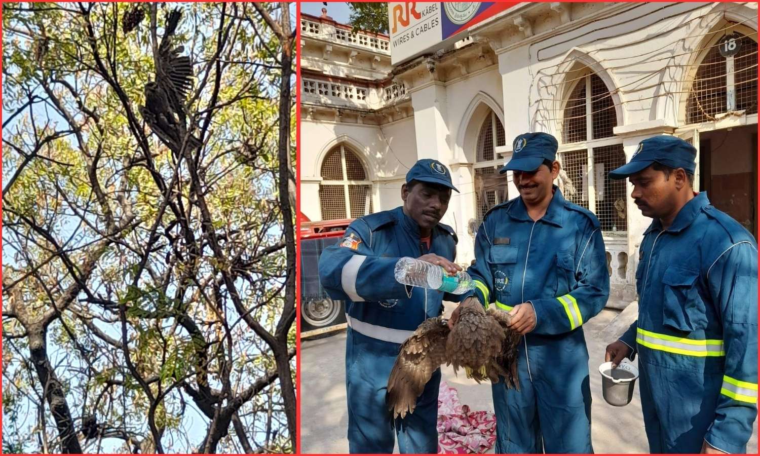 The rescue was conducted under the supervision of District Fire Officer T. Venkanna and Station Fire Officer (High Court) K. Rajkumar. Officials said the operation required careful handling due to the sharp manja wrapped around the eagle.