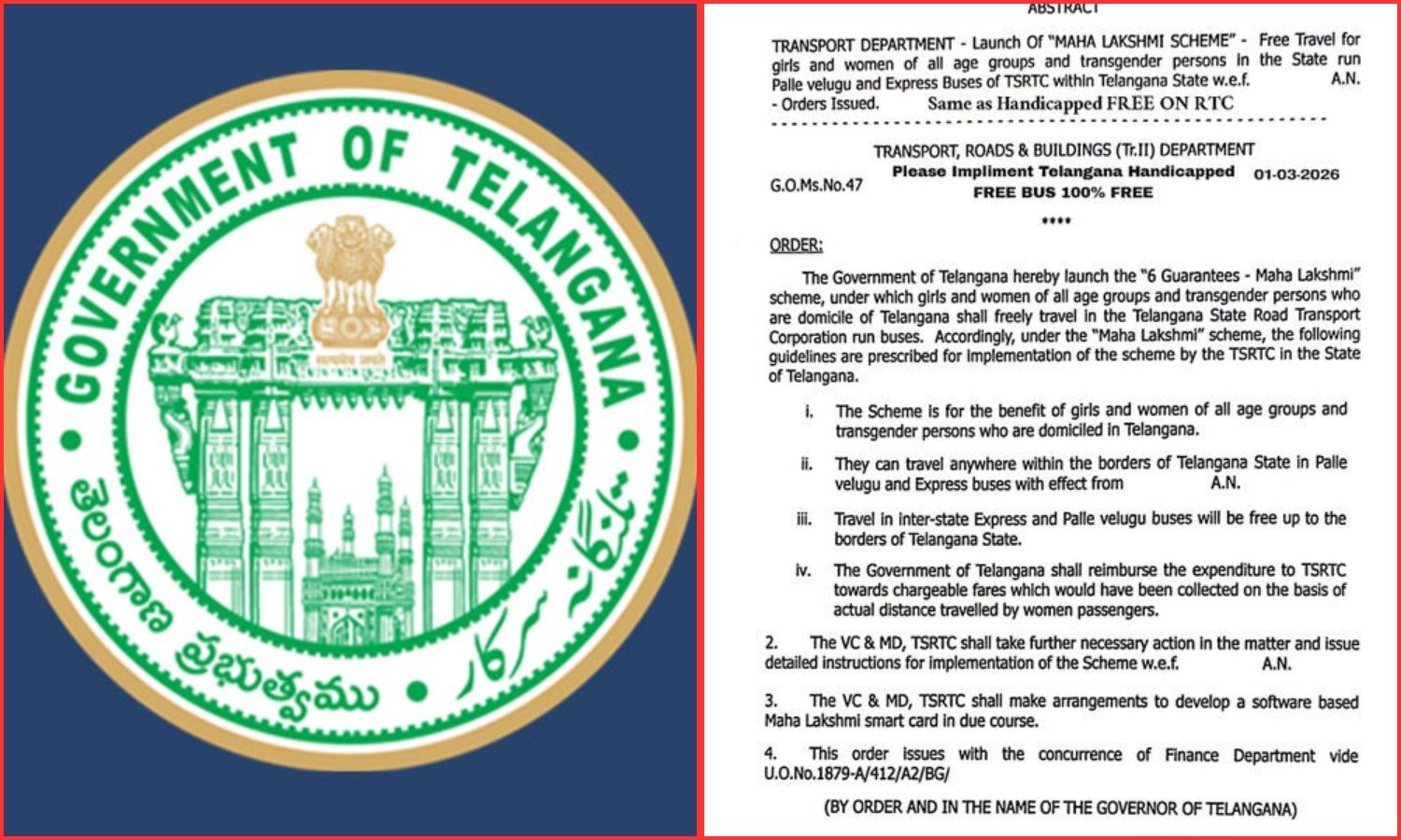 Hyderabad: The Telangana government extended free bus travel to disabled persons in RTC buses, issuing fresh orders under the Maha Lakshmi Scheme.