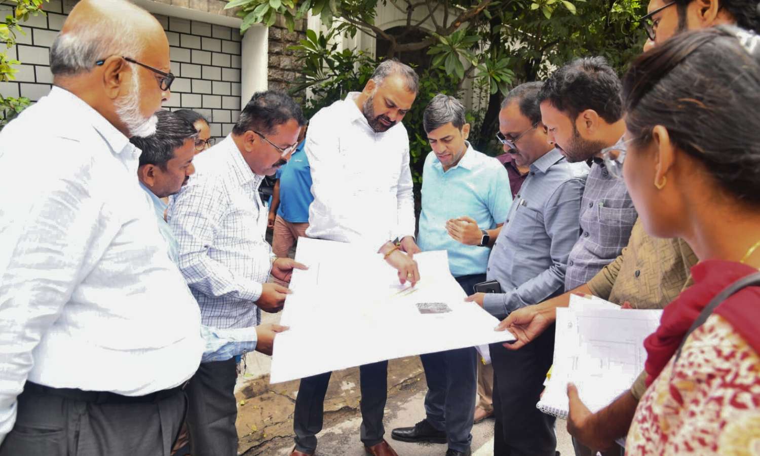 Zonal Commissioner Anuraag Jayanthi, Chief Engineer Bhaskar Reddy, and Jubilee Hills Deputy Commissioner V. Sammaiah accompanied the inspection and reviewed technical plans with the Commissioner.