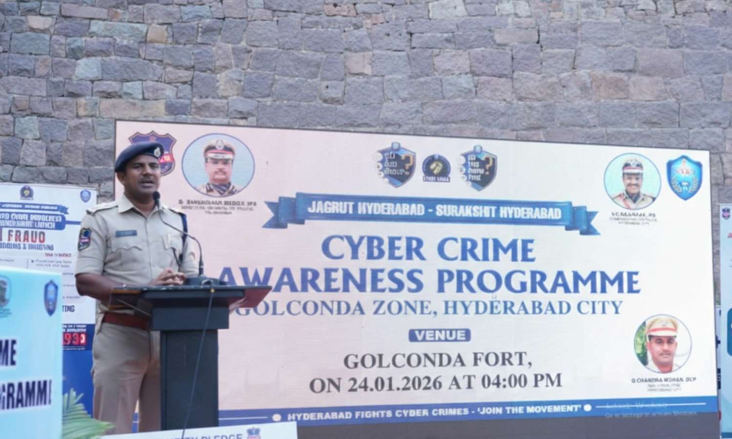 Hyderabad: Golconda Zone Police held a Cyber Crime Awareness Programme at Golconda Fort on Thursday under the “Jagrut Hyderabad – Surakshit Hyderabad” initiative to educate the public on cyber threats and safety protocols.