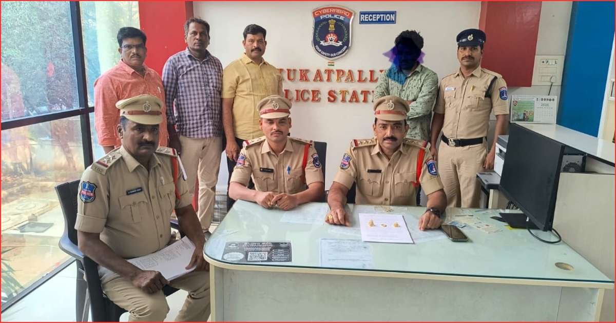 The operation was carried out under the supervision of Kukatpally SHO K. Venkata Subba Rao. SI Ravinder Reddy, head constables Ravinder and Amruth Rao, and constables Krishna, Ajam and Nagarjuna played key roles in the arrest.