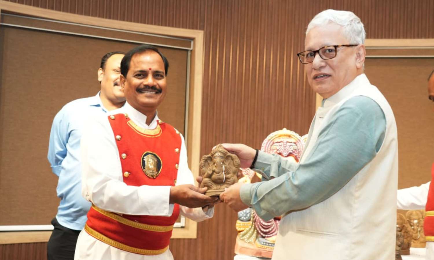 The initiative aimed to encourage environmentally sustainable practices during the Ganesh Chaturthi festivities. Addressing the staff, the Governor conveyed his wishes, stating that Lord Ganesha would remove obstacles and bring unity, peace, progress, and prosperity.