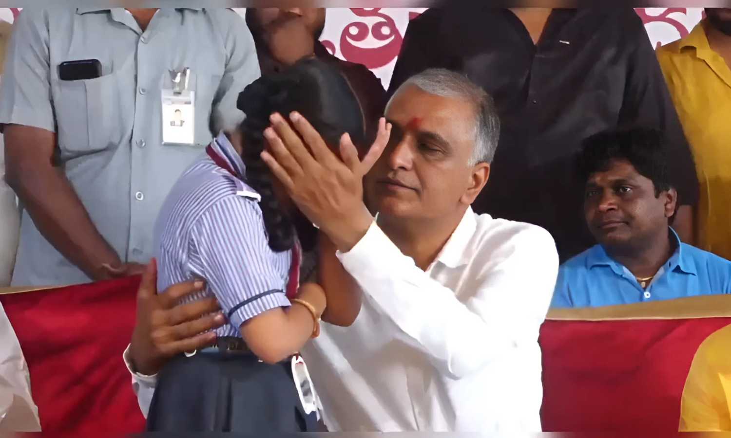 Harish Rao, deeply touched by the young girl’s words, called her to his side and consoled her. He sat with her for a while, offering comfort and encouragement.