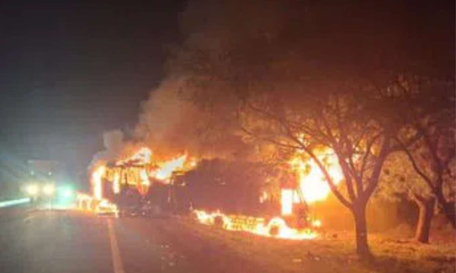 Police said one truck was carrying tomatoes to Bengaluru, while the other was transporting stones. After the collision, both vehicles caught fire.