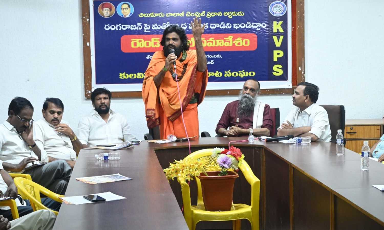 Speaking at a state-level roundtable organized by the Kula Vivaksha Vyatireka Porata Samiti (KVPS) in Hyderabad, Ramanamurthy criticized Veera Raghavareddy for using religion to recruit youth. He alleged that Raghavareddy, who claims to be a descendant of Lord Rama’s Ikshvaku dynasty, is mobilizing temple youth in the Telugu states. He accused him of demanding temple lands and funds to build an armed group in the name of Hindu dharma.