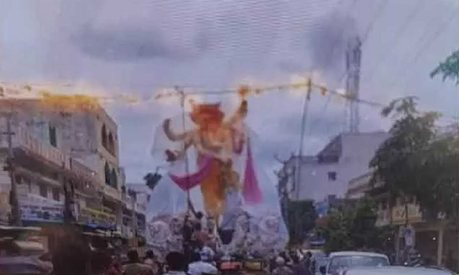 Hyderabad: A major mishap was narrowly averted in Attapur on Sunday when a Ganesh idol being transported for installation touched live electric wires at Rambagh. Sparks flew from the overhead line, triggering panic among devotees.