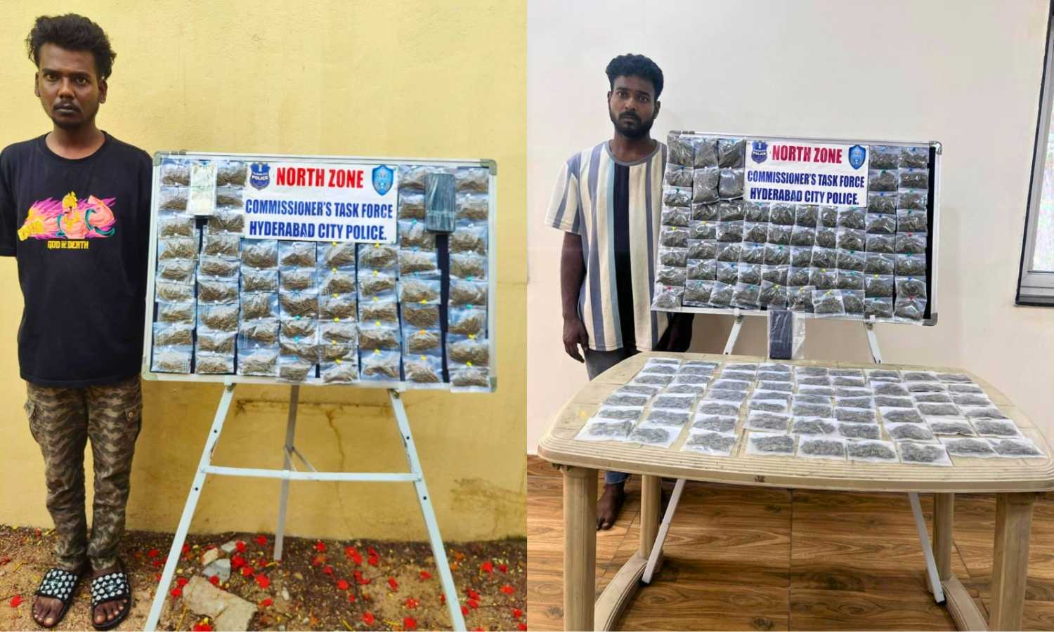 Acting on a tip-off, police nabbed Teja on May 30 and found 500 grams of ganja in his possession. The very next day, they tracked down Lakhan near Jubilee Bus Station in Secunderabad and seized 1.1 kilograms of the drug from him.