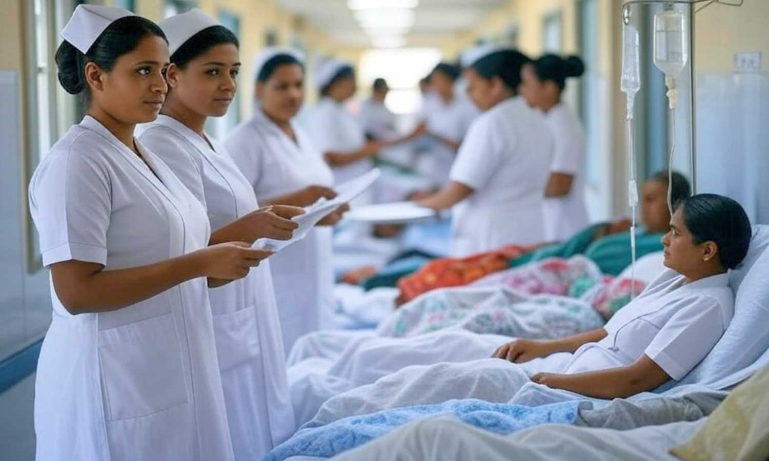 Under WHO and Indian Nursing Council norms, ICU beds require a 1:1 nurse-patient ratio, high-risk beds 1:2, and general wards 1:5. On the ground, those ratios are more aspiration than reality.