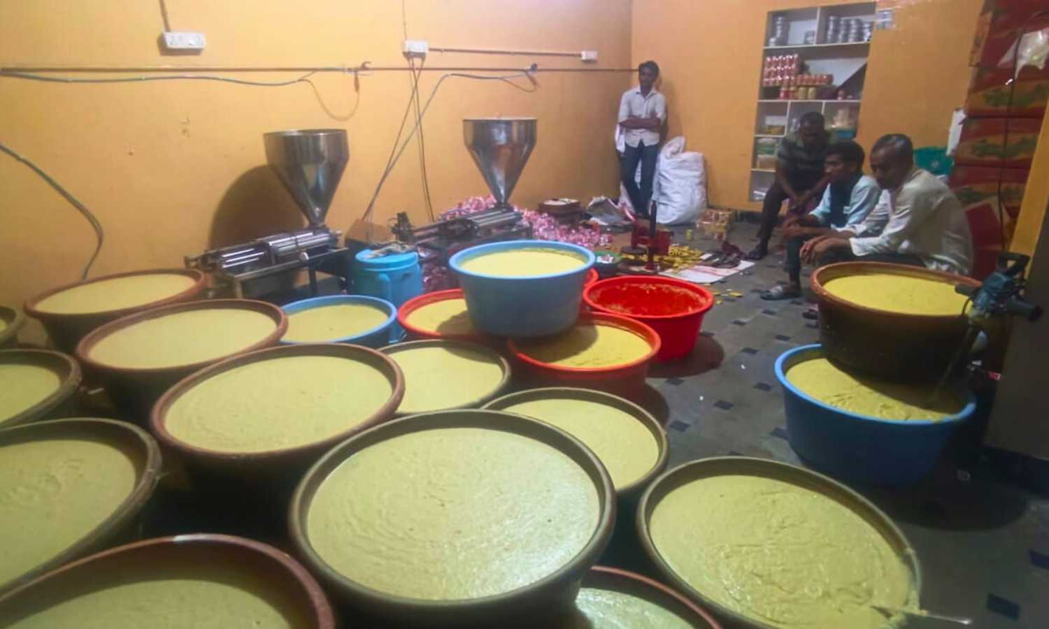 Officials found that the packaging displayed FSSAI Licence No. 13624010000299, which had expired. They seized 1,600 kg of loose paste stored in 40 plastic tubs and 130 containers of 5 kg each weighing 650 kg. In addition, they confiscated 900 containers of 1 kg each, 300 containers of 500 grams weighing 150 kg, 3,000 containers of 200 grams weighing 600 kg, and 2,000 sachets of 50 grams weighing 100 kg.