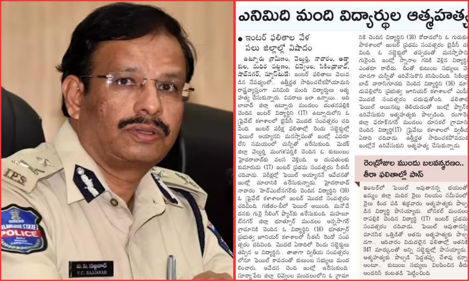 Hyderabad: Hyderabad City Police Commissioner V.C. Sajjanar urged students to stay strong following a series of exam-related suicides, cautioning against treating failure as the end of life.