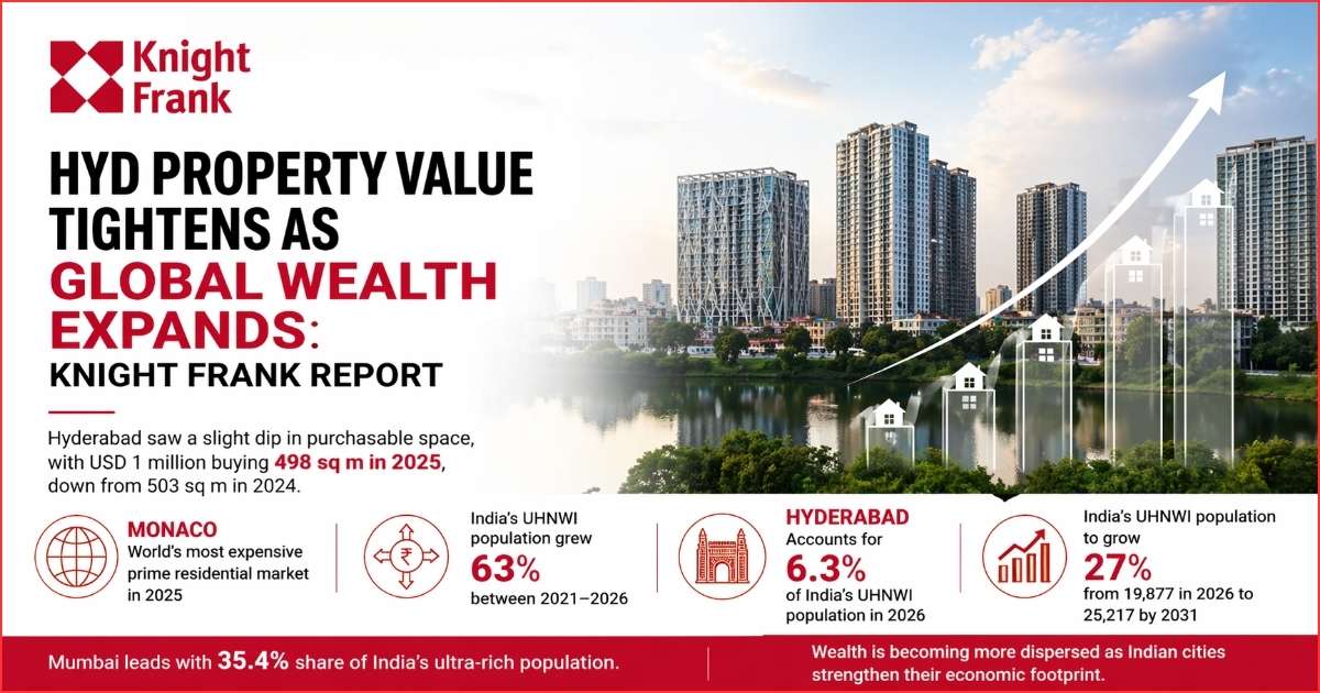 Hyderabad: Hyderabad property value tightened in 2025 as global wealth expanded, according to Knight Frank’s latest Wealth Report.