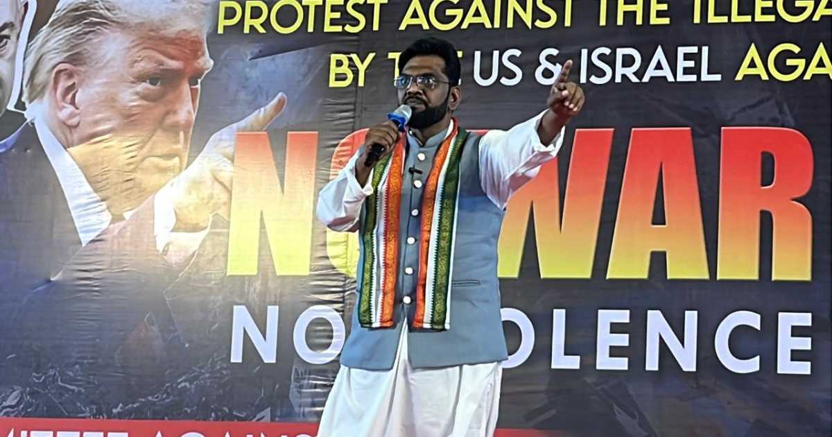 Hyderabad: Hyderabad District Congress Committee President Syed Khalid Saifullah condemned the US-Israel military action on Iran and criticised the Centre’s response during the Hyderabad protest Iran strikes held on Sunday.